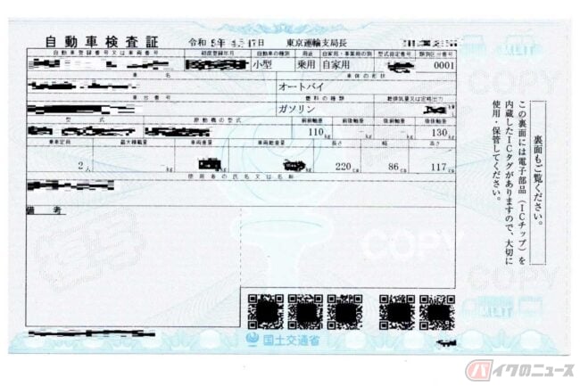 ちなみに、小型二輪の2023年1月4日以降の電子化された「自動車検査証」は、国土交通省の「車検証閲覧アプリ」を使えば記録内容をスマートフォンに保存できます。アプリも記録内容も車検証のQRコードで読み込めるので、バイクを購入したり車検を受けたら直ちにスマホで読み込んで保存しておきましょう。