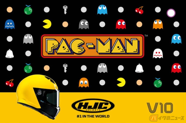 HJCヘルメットは、バンダイナムコのゲームキャラクター「パックマン」とのコラボレーションヘルメット「V10 PAC-MAN」を発表しました。