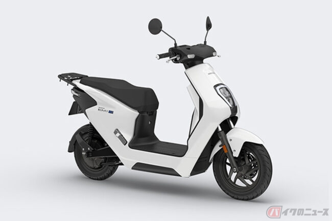 日本においては原付一種に区分されるEM1e:は、「ちょうどe:(いい)Scooter」を開発コンセプトに、ユーザーの日々の生活スタイルにマッチする、パーソナルコミューターを目指して開発された電動モデルで、動力用電源には交換式バッテリーの「Honda Mobile Power Pack e:」を1個使用しクリーンで静かな走行を可能にしています。