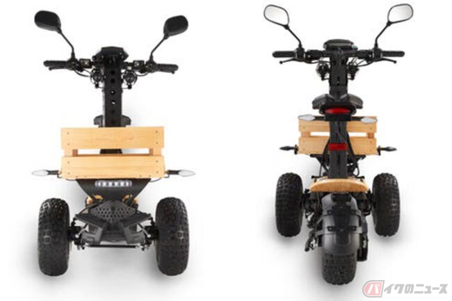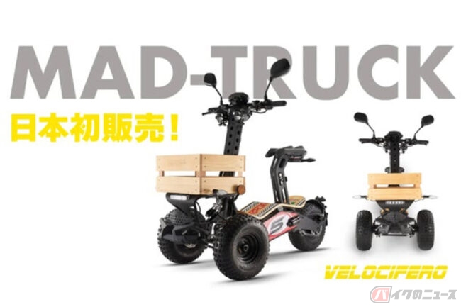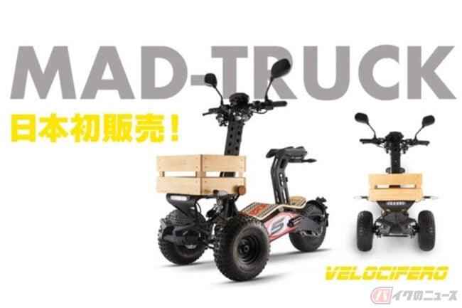リターン品の配送が完了するまで、VELOCIFEROの日本における初の独占販売権を有する正規代理店のアンドゥートロワが導入するMAD-TRUCKは、前後にファットタイヤを装備する電動リバーストライクで、普通自動車免許での運転が可能となっています。