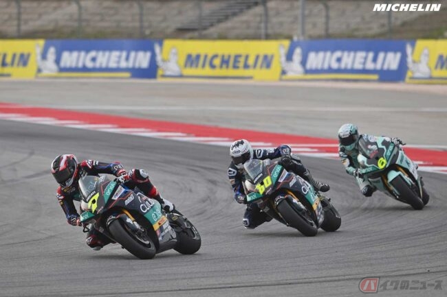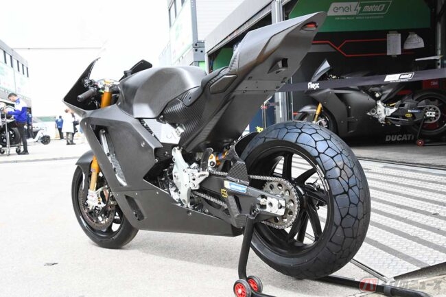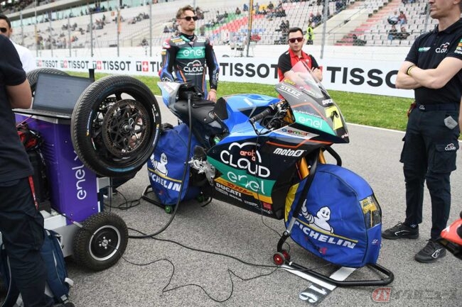 「僕はMotoE参戦1年目なので、以前のシーズンのタイヤとは比較ができないんだけど、リアタイヤの進化を見て、ちょっと怖かったよ。見た目が普通のタイヤとは全然違うんだ。でも、性能はよかったよ。十分だ」