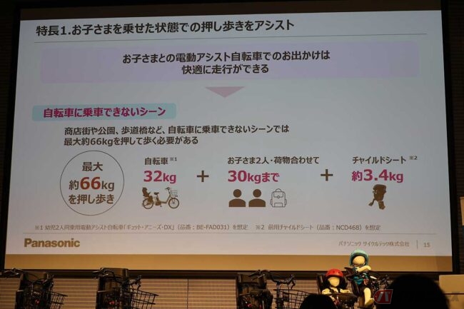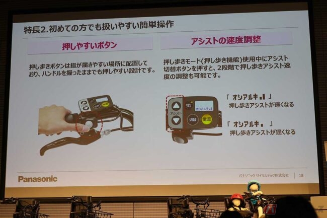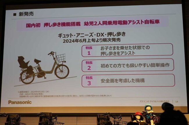 パナソニックでは2021年に国内で初めて、押し歩きをアシストする機能を搭載した(子乗せではない)電動アシスト自転車をリリースし、その後の反響と要望、ユーザーへのアンケート調査を踏まえた結果、子乗せ電動アシスト自転車への搭載に至りました。