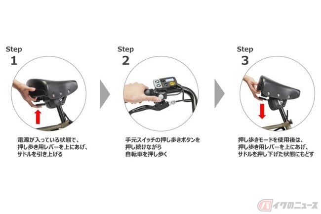 モーターの力で押し歩きもラクラク!! 重たい電動アシスト自転車に子供+荷物上乗せの取り回し負担を解消か