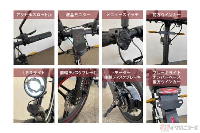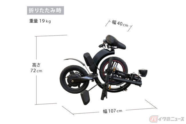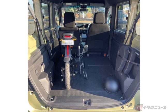 折りたたみ機構を採用することで軽自動車の荷台にも積載できるMK114では、前後ディスクブレーキや液晶モニター、LEDヘッドライトを搭載。