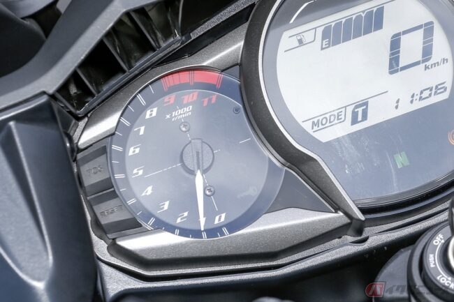 この部分は「レッドゾーン」と呼ばれ、これ以上エンジンの回転数を上げてはいけない範囲として、タコメーターのある全てのバイクに表示されています。