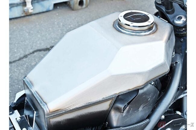 「ドレミでは、Z900RSの着せ替え外装をずっとやっていくつもりでインナータンクという発想になったんですけど、最初に作ったZ1 Styleのタンクカバーに収まるように容量を14リットルに設定しています。