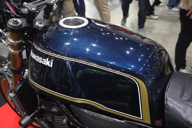また、純正よりもタンク容量が減ってしまう(Z900RSの純正は17リットル)のが嫌だというユーザーさんの声もありましたので、それならばMk.2 Styleではインナータンク無しのスチールタンク仕様にしてスタイルの再現と共に、純正と同等のタンク容量の確保を目指しました。