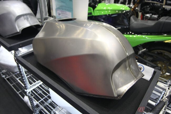 ドレミコレクションは、カワサキ「GPZ900R Ninja」用のチタン素材・燃料タンクの市販予定モデルを東京モーターサイクルショーで公開しました。