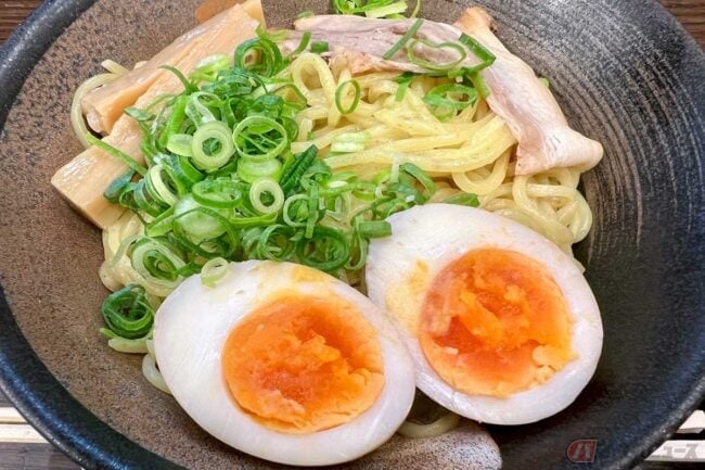 出来上がりを見ると、写真のイメージ通りです。あの麺とたっぷりの刻みネギ、メンマとチャーシュー、そして味付け玉子が、特製ダレと混ぜられるのを待ち望んでいるかのようです。