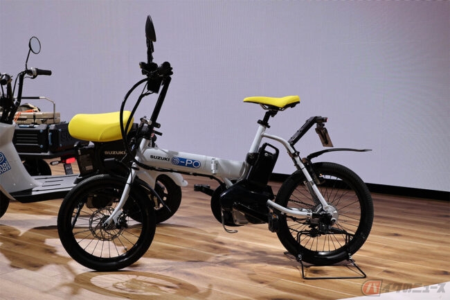 スズキがパナソニックサイクルテックと共同開発し、JAPAN MOBILITY SHOW 2023に参考出品した原付一種の折り畳み電動モペッド「e-PO(イーポ)」の公道走行調査を、2024年6月上旬頃より開始します。