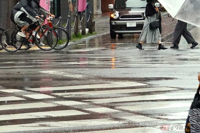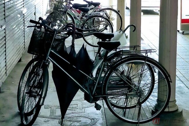 雨が降ると自転車に乗る機会はぐんと減ります。自転車の「傘差し運転」が法令違反なことは周知の事実となりつつありますが、まだ傘を差して自転車に乗っている人もチラホラ……。手を使って差すのは法令違反ですが、じつは固定用のスタンドを使うことも……?