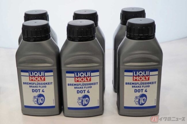 油圧式ディスクブレーキに使用されるブレーキフルードは、慣例的にはブレーキオイルと呼んでいますが、実際はオイル(油)ではなく、ポリエチレングリコールモノエーテルが主流になります。