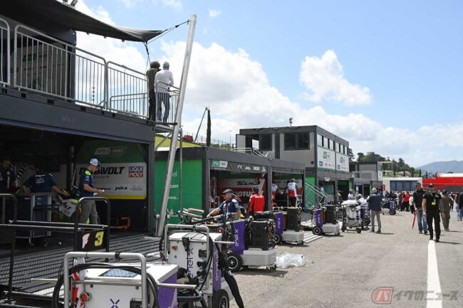 これに近い理由で、2024年はイギリスがMotoEのカレンダーから外れているのです。シルバーストンはコース全長が長いため、雨などで周回数が減算された場合、5周のレースになるからです。よって、レースの途中で中断が発生した場合、バッテリー充電をどうするのかは、今後の課題となるでしょう。