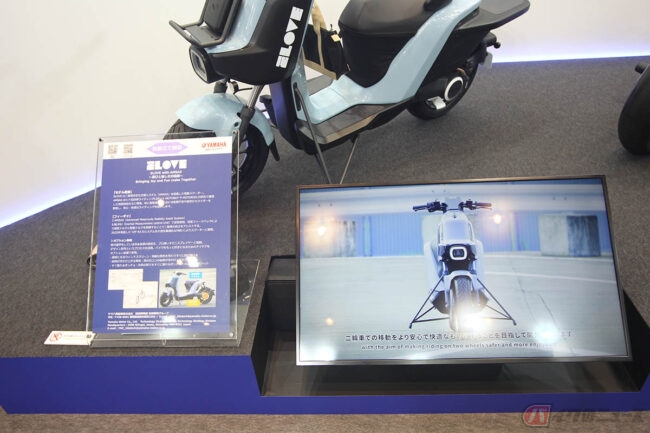 ヤマハは、「人とくるまのテクノロジー展 2024 YOKOHAMA」で開発中の「AMSAS」(アムサス:Advanced Motorcycle Stability Assist System)を搭載した電動スクーターのコンセプトモデル「ELOVE(イーラブ)」を出展しました。