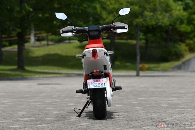 FW-03をさらに詳しく見ていきます。スタイリングは前述の通り、ホンダが30年前に出した「EZ-9」を彷彿とさせるもの。しかし、EZ-9はコース専用車両で、FW-03は公道モデルです。当然ながら、灯火類やナンバープレートなどを装着しています。