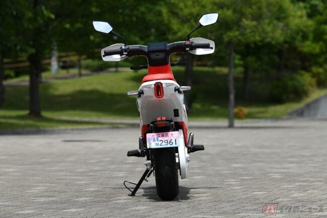 走り出すと、そのパワーに思わず笑みが。内燃機搭載車と同様の違和感のないパワーの出しかたは秀逸で、電動だからといって急激にパワーが出たりといった扱いにくさは一切ありません。それでいて、125ccエンジンモデルよりも常に少し高めのトルクを感じるので、余裕のある走りを満喫できます。