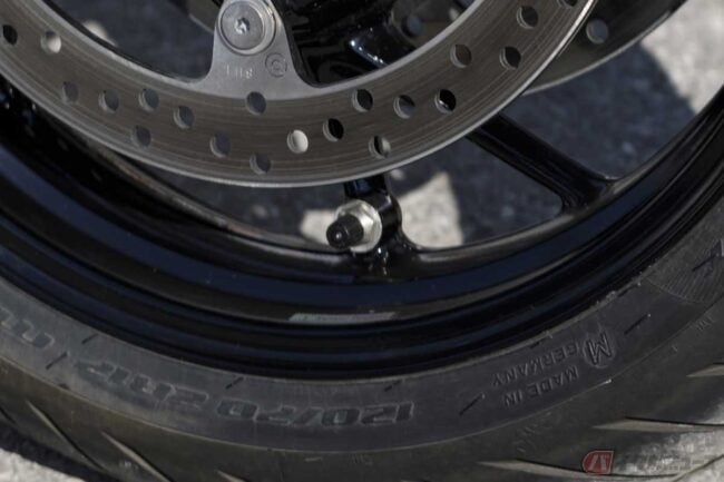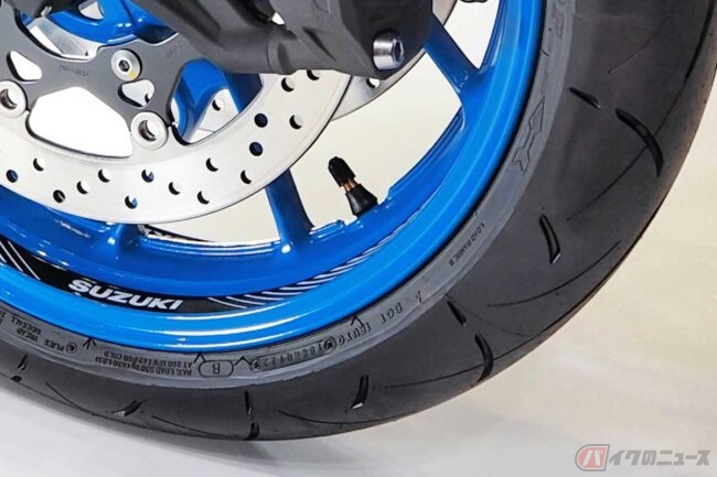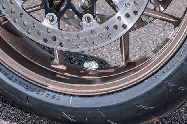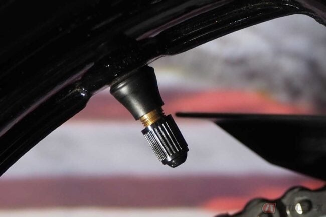 しかしエアバルブを横方向に寝かせてしまえば、バルブコアが遠心力で開く動きを大幅に抑えることができます。横向きエアバルブが大排気量の高速ツアラーやスーパースポーツ系などから採用が始まったのは、こういった理由もあります。