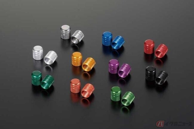 またエアバルブのキャップもアフターパーツが多数リリースされています。紛失したり、装着していても樹脂が劣化している場合もあるので、ドレスアップを兼ねて交換するのもアリでしょう。
