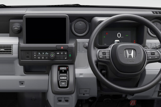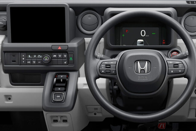 より長尺の物を積めるよう助手席側ダッシュボードの形状が工夫され、N-VANガソリンモデルと比較し95mm室内長が伸ばされたほか、助手席を無くしたことで4人乗りのe: L4やe: FUNに対し120mmフロア高が下げられ、使い勝手が向上されています。