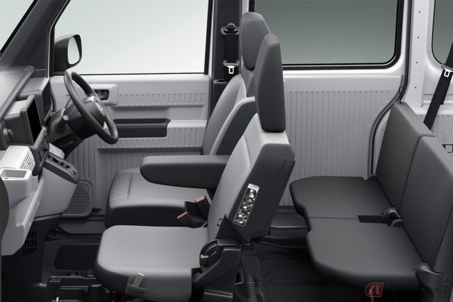 シートは運転席と運転席側後席の2席の前後タンデム仕様を採用。左側の座席がない空間と、ピラーをなくした大開口部によってN-VANの価値が際立つ、乗り降りや荷物の出し入れがよりしやすい仕様となっています。