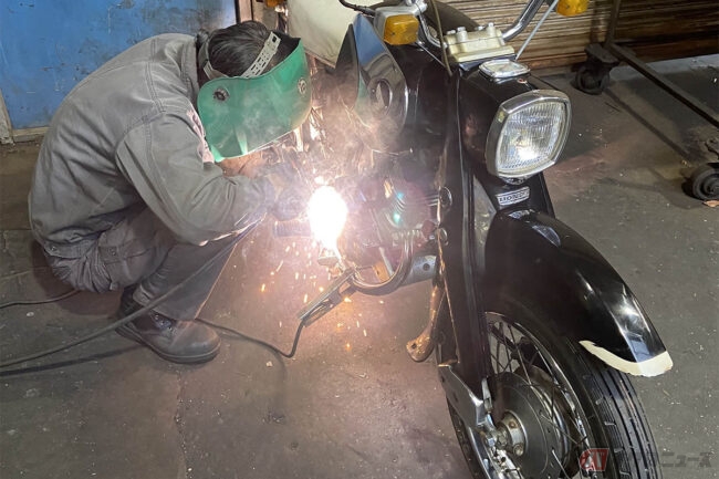老舗内燃機屋「井上ボーリング」で、年間700台ものヘッド再生を行うベテランヘッド技師が、不動車となったホンダ「ベンリイC92」の再生とモディファイを行う連載。第13回目は、穴の開いてしまったノーマルマフラーを、外装に似合うデザインの物に交換します。