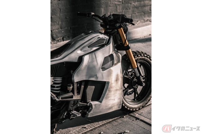 クリスティアン・ソーサ氏はこれまでガソリンエンジン車をベースにカスタムを施してきたため、新しいマシンを手掛ける際にはエンジンとミッションに焦点を当て、ベースとなるモデルが将来どのように発展するかを想像しデザインしてきたといいますが、今回はベースモデルが電動バイクであるため、同氏がよく使う曲線的なデザインに比べ、よりシャープで直線的なラインを選択。