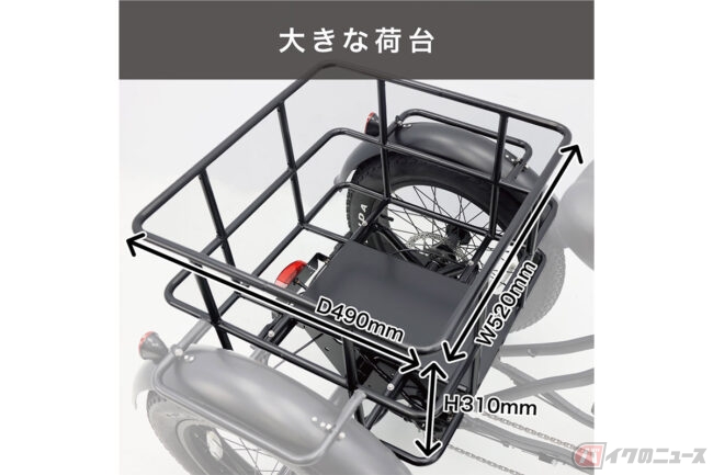 最大積載90㎏の大容量カーゴ付、フル電動3輪モビリティ