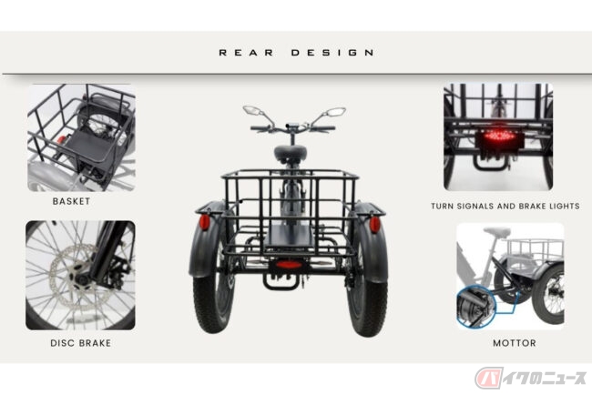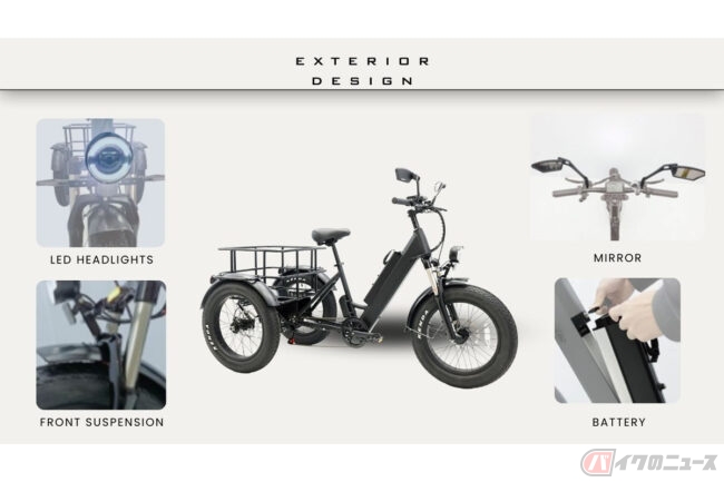 アントレックスは、アシスト自転車、電動スクーターを取り扱うなかで、ユーザーの要望から、買い物やお出かけの荷物が積みきれない、重いものを積むと危ないなどの声を受け、3輪という形に着目。