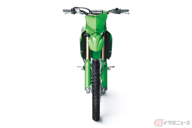 フレームはKX450譲りの堅牢なアルミペリメターで、直進安定性と俊敏なハンドリングが高い次元で両立されています。