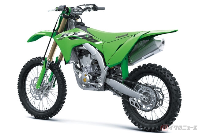 カラーは両モデル共にライムグリーン1色で、価格(消費税10%込)はKX250が90万2000円で、新型KX250Xが92万4000円となっています。