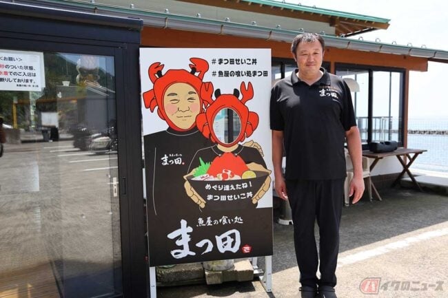 店主の枩田(まつた)さんに話しを聞くと「まつ田せいこ丼」は、「せいこがに」と呼ぶメスの「越前かに」をふんだんに使った丼だそうです。シーズンは11月から12月。その後、オスの「越前かに」を使った「まつ田ずわい丼」が登場するそうです。