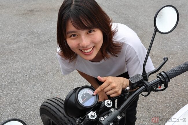 メーターは、デジタルとアナログの融合で、シンプルかつとても視認性が高い。レトロな印象で今時のバイクからかけ離れたデザインが差別化されていて細かいところにもこだわりを感じました。