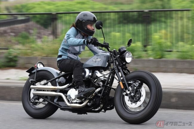 シート高が650mmというクルーザーらしい車高の低さで、車両重量は175kgである程度のずっしりさを感じるものの両足で支えることにストレスは感じません。このスタイルは車高が低いからこそ重心もわりと低めなので、駐車から発進するために車体を起こす時はテコの原理で持ち上げやすいと感じました。