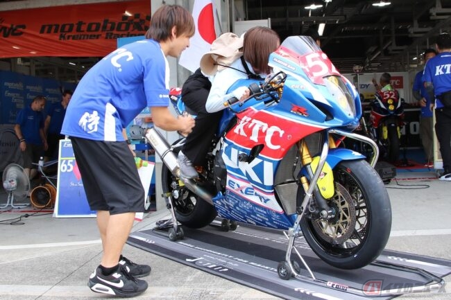 鈴鹿8耐で実際に使用しているレース用マシンに跨らせて頂きました。