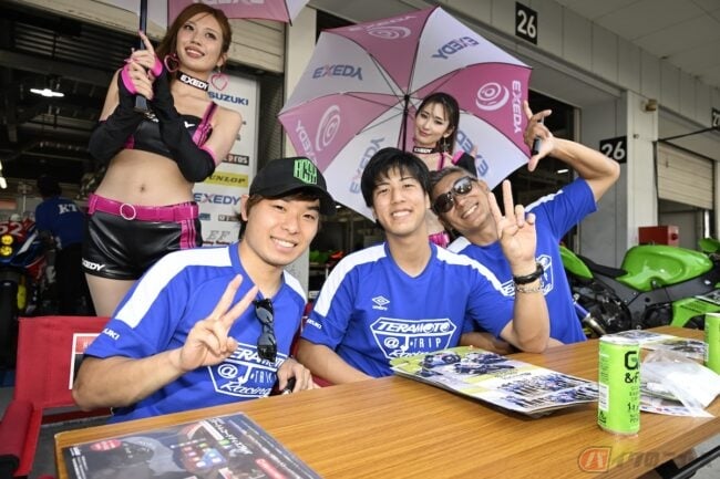 昨日のSSTクラスの予選でポールポジションを獲得した石塚健選手が在籍するTERAMOTO@J-TRIP Racingのピットへお邪魔しました。石塚さんとは、以前バイクのニュースの新型車試乗でもご一緒させて頂いてます。
