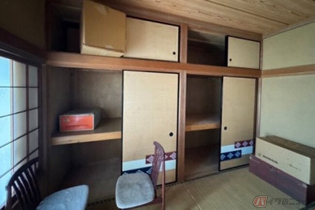 同物件は看板から想像するに元は電機店だった様子。1階は店舗スペースになっていて、間口が広いからバイクの出し入れも簡単そうです。シャッターがついているのでバイクの保管に最適で、心配なら防犯装置を追加すれば安心でしょう。床がコンクリートのようなので大きな工具箱などを置くこともできそうです(詳細は不動産屋さんで確認してください)。