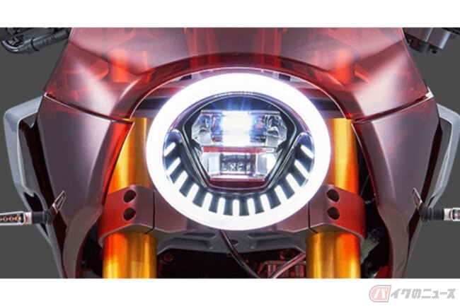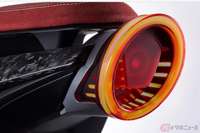 スケルトン素材のフェアリング、丸型のヘッドライトとテールライト、短く切り詰められたテールカウルにより、ネオクラシックなシルエットに仕上げられています。