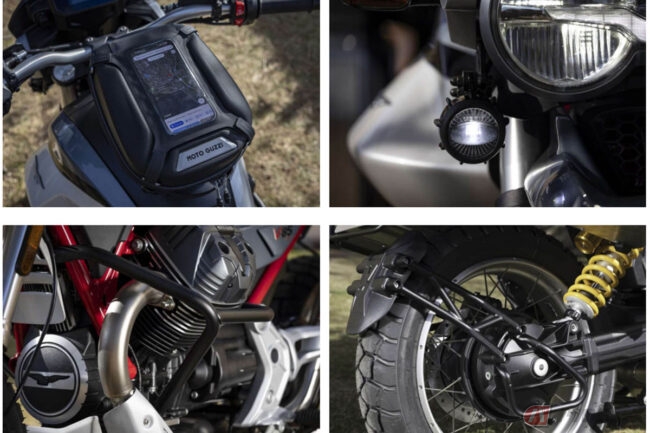 同モデルでは、V85の象徴的ですぐにそれと認識できるスタイリングをよりモダンな解釈で進化させるべく、タンク、サイドパネル、フロントマッドガードのライン、そして彫刻の様な90度縦置きVツインエンジンによって確立される基本的なデザインなど、本来の魅力を維持する多数のディテールが改良されました。