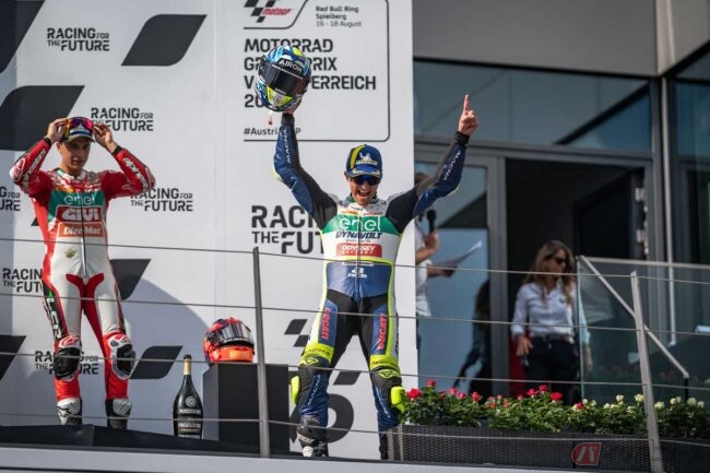 オーストリア大会をチャンピオンシップのランキングトップで迎えたのは、エクトル・ガルソ選手です。今大会は、ガルソ選手とMotoEルーキーのオスカル・グティエレス選手がコース上で激しく火花を散らしたレースとなりました。