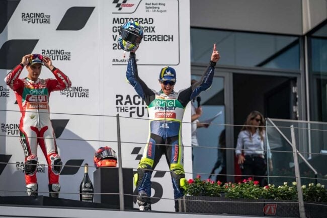 一方、オーストリア大会でガルソ選手と激しい優勝争いを展開したグティエレス選手のレースも見事でした。グティエレス選手はMotoEで初となるポールポジションを獲得し、レース1で今季2勝目を挙げました。