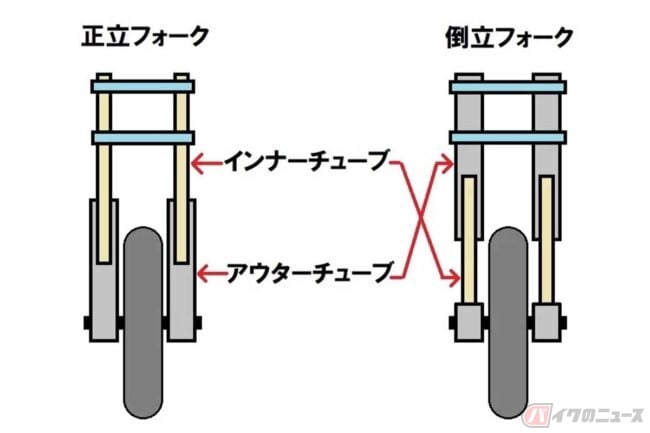 バイクのフロントフォーク、「正立」と「倒立」はナニが違う?
