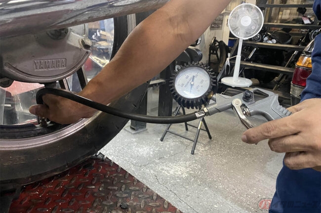 バイクのタイヤの空気圧は、安全に走行する上で、非常に重要な点検項目です。