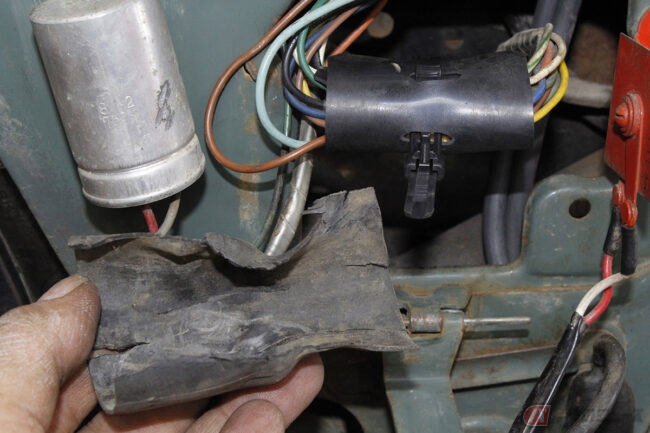 この電装系の動作点検によって、6V仕様のウインカーリレーの故障とフロントのウインカーアースの不良が判明しました。念のために、すべてのウインカーバルブソケットのアース接点を磨きました。その後は、正しく安定作動するようになりました。どうしてもボディアースが遮断されてしまう際には、ハンドルとボディを見えない部分で結線することで、アースリードが確実に改善されるでしょう。