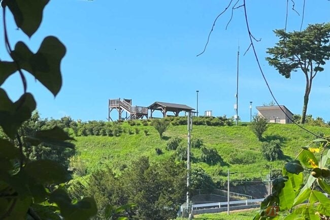 いよいよラスト1kmというところで現れるのが、このコース最大の激坂。最後の力を振り絞ってペダルを踏み込めば、標高805mの『福島てっぺん公園』に到着です。