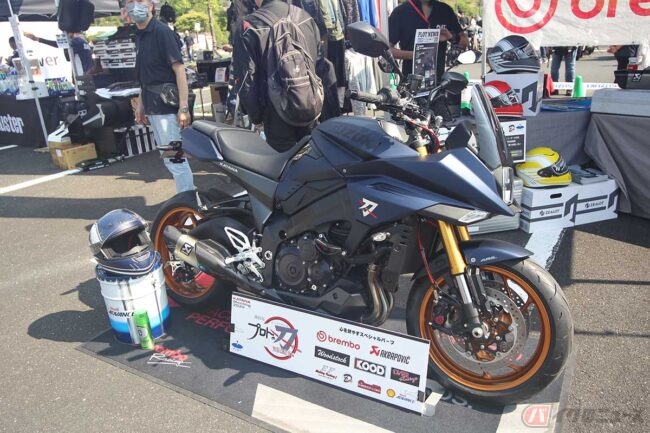 イベント当日、ステージ開会となる10時前には鈴木俊宏社⻑みずからが日本初公開となるブルーのカラーリングのKATANAに乗り来場。