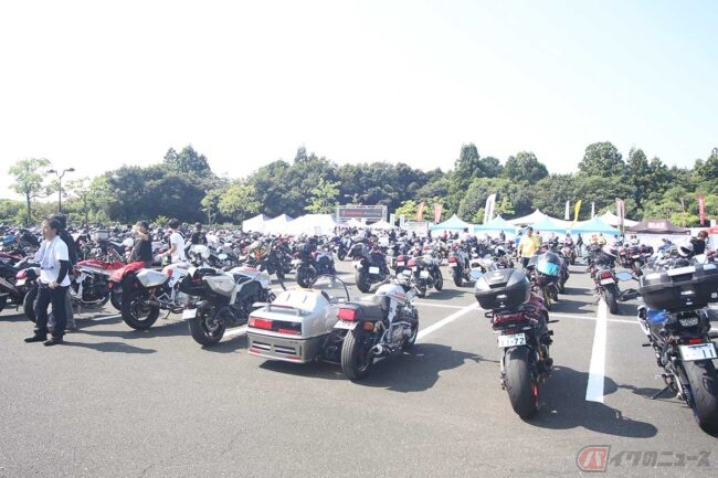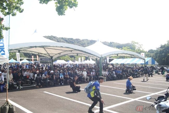 2019年に登場した新型モデルの発表に伴い開催され、今年で6回目の開催(コロナ禍中はオンラインで開催)となるKATANAミーティングは、お笑い芸人でありバイク愛好家として知られるチュートリアルの福田充徳さんによるトークショー、ダーツで当たる!抽選会、じゃんけん大会などのステージイベントやイベント会場限定のKATANAグッズなどの販売が行われる屋外イベントです。