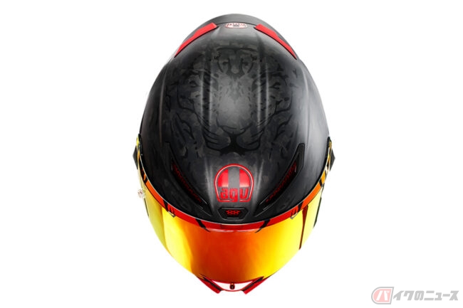 PANTERAはパンサーを意味していて、100%フォージドカーボンのシェルに、メタリックコーティングされた3DエフェクトのAGVロゴや、バイザーの一部にもパンサーグラフィックが施されていたりと、シックで洗練されたデザインとなっています。