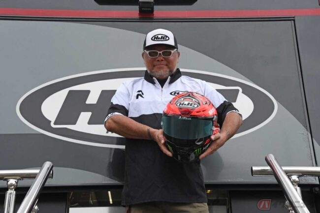 MotoGPライダーをサポートする韓国のヘルメットメーカー『HJC』の、MotoGPパドックでサービスを行なう長谷川朝弘さんに話を伺いました。