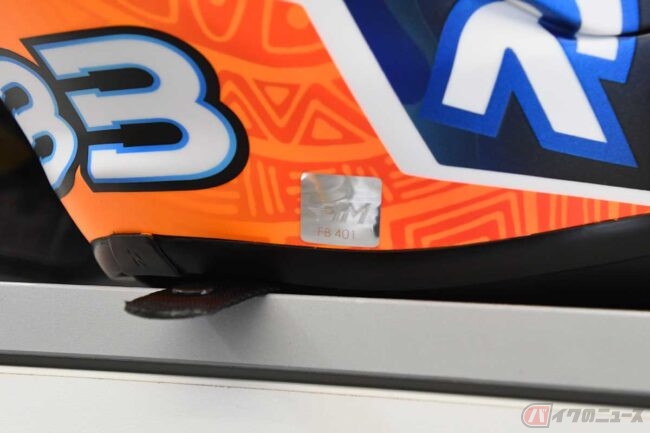 「IRTA(the International Road-Racing Teams Association)の車検に行って、(FIMの)ステッカーをもらわないといけないんですけどね。QRコードをスキャンして、ナンバーを登録するとシールがもらえるので、それを貼ればレースで使用できるんです。(MotoGPライダーが使用しているヘルメットは)市販品と全く一緒なんですよ」