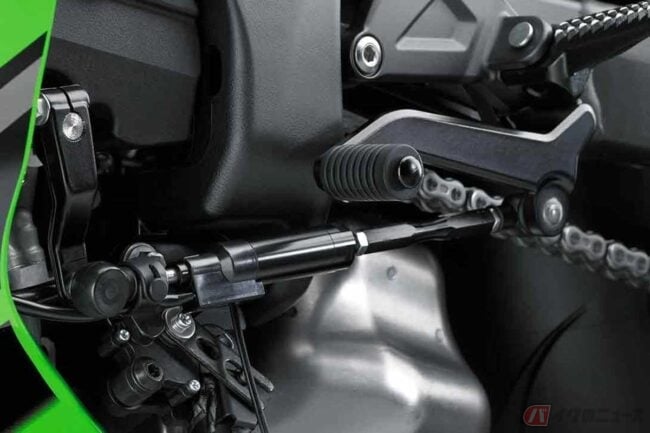 さらにエンジン回転数や選択したギア、前後のタイヤの回転差などを検知して、燃料カットや点火カットによってスロットルを開けた際のタイヤの空転を抑える「トラクションコントロール」も可能になりました。従来からのクイックシフター(アップ側)もECUで制御することで、動作が緻密になりました。